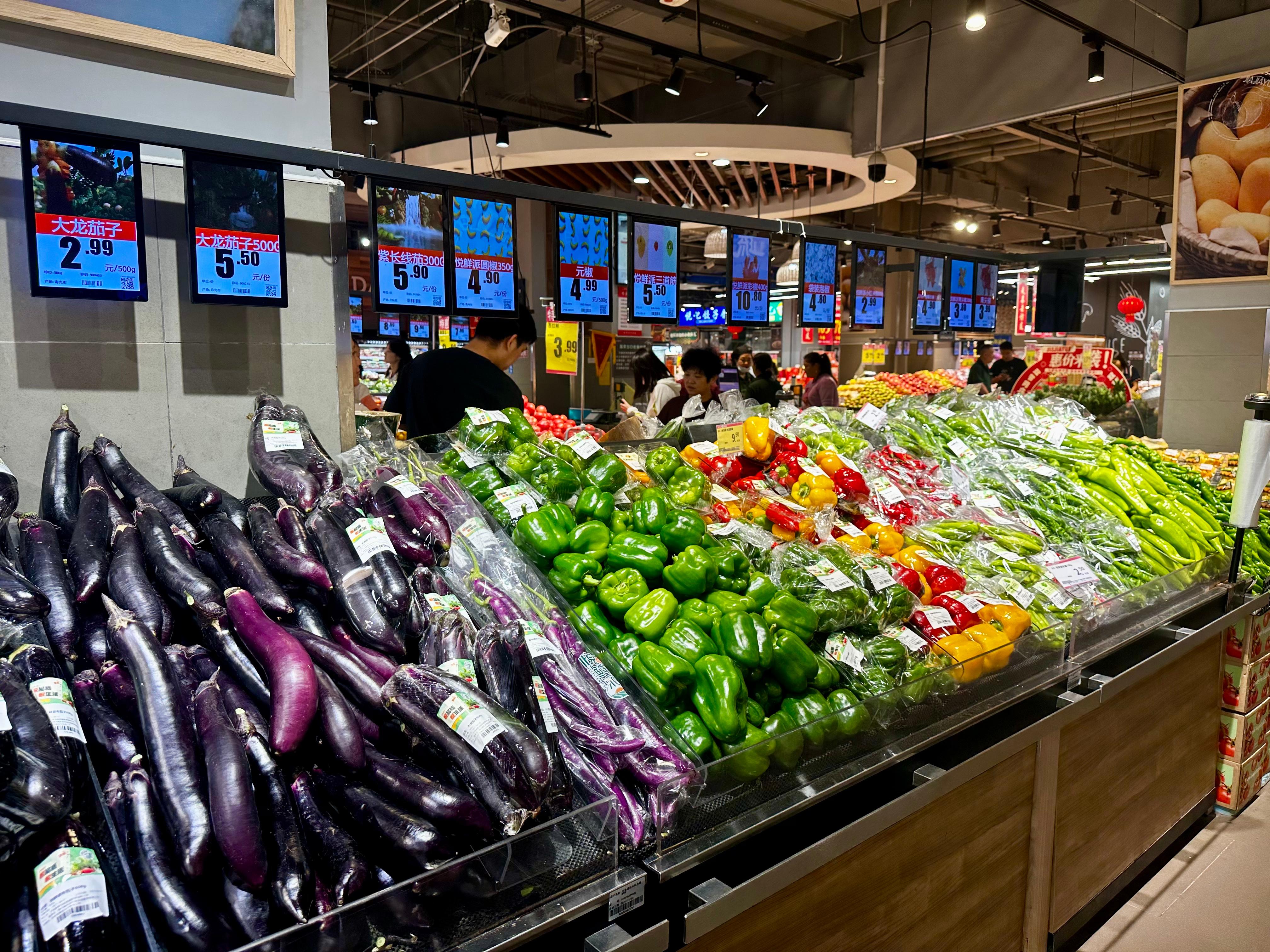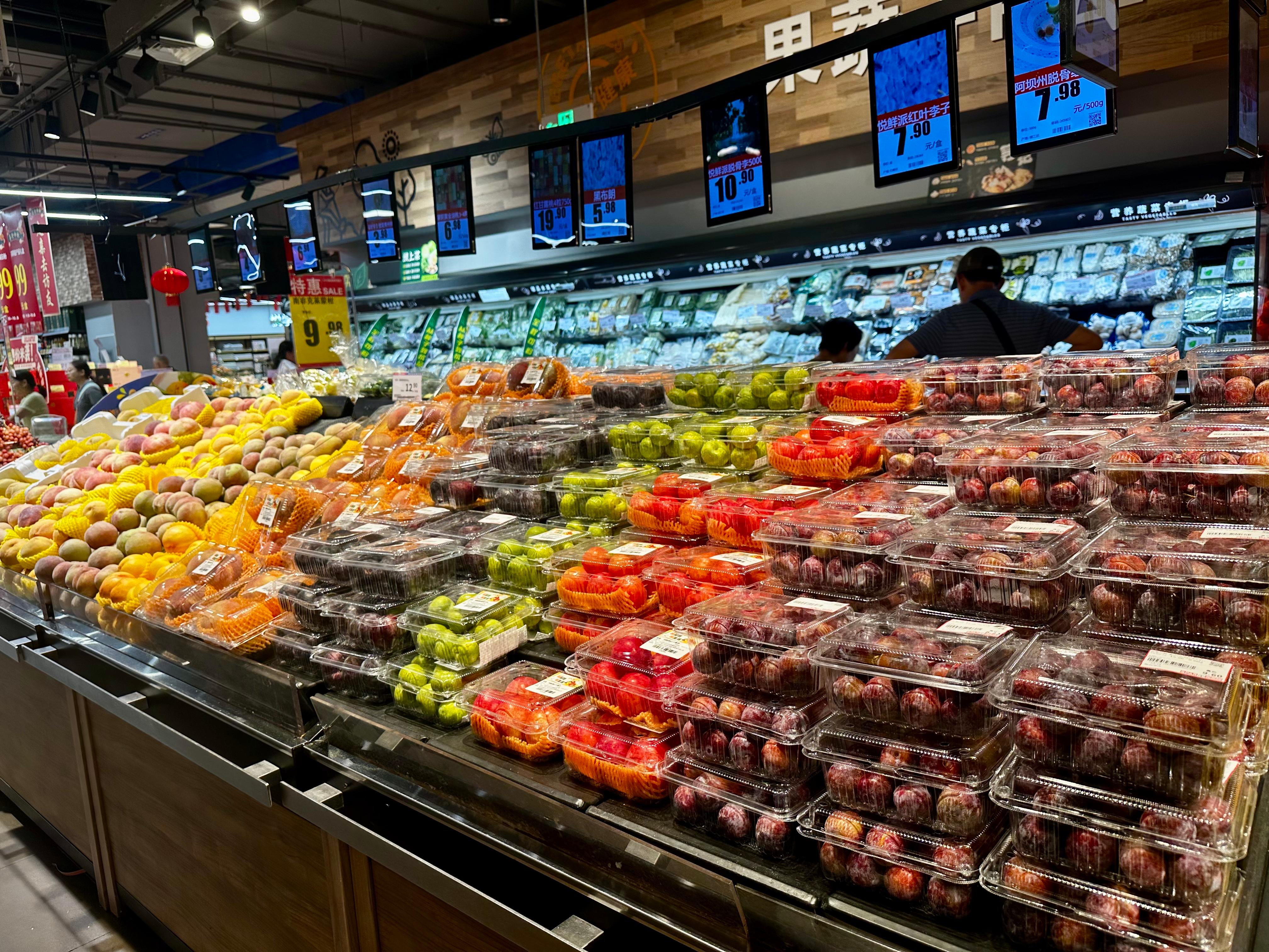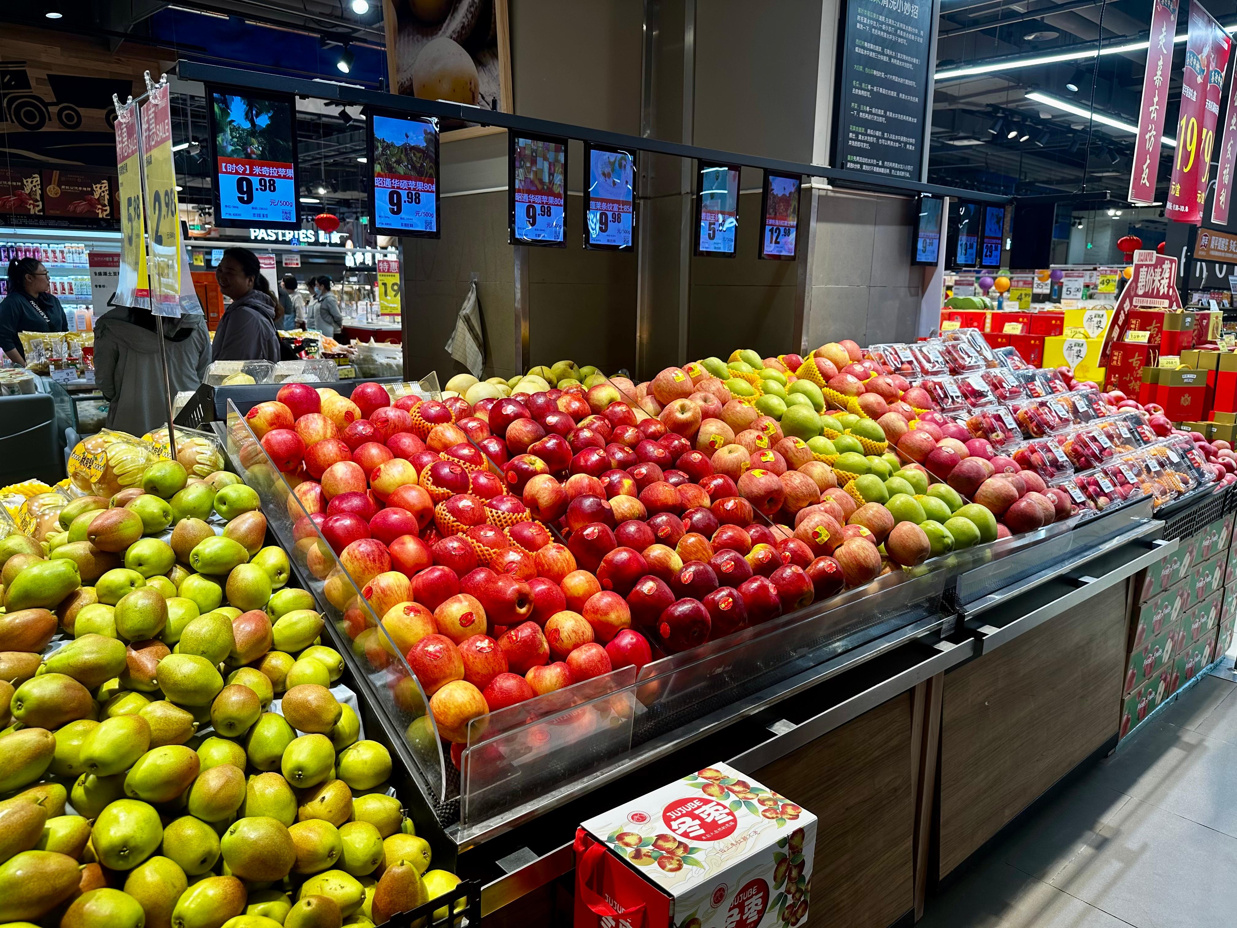踏入家家悦融创茂店,首先映入眼帘的是宽敞明亮、布局合理的购物空间。店内灯光明亮柔和,营造出温馨舒适的购物氛围。地面干净整洁,货架整齐排列,各类商品分区明确,标识清晰,让消费者能够轻松找到所需物品。